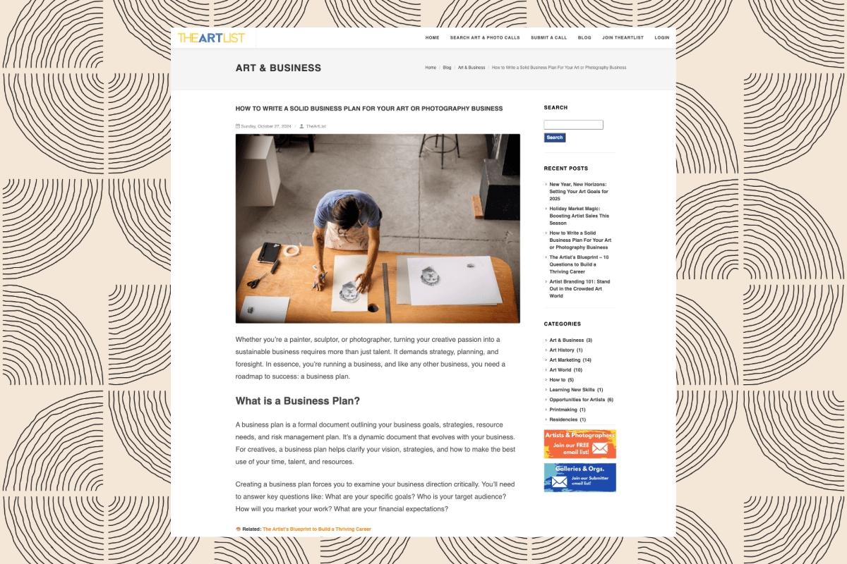 TheArtList approached us with a clear vision: to create a blog that would not only attract new users but also serve as a resource hub for its 55K+ newsletter subscribers. As a platform connecting visual artists and photographers to income and exhibition opportunities, TheArtList needed content that would resonate with its audience and position the brand as an essential tool for creatives and makers.